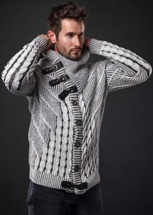 It's black/lt. cinnamon weave exudes quiet power, while the statement buckles and oversized shawl collar nod to heritage design reimagined for the modern era