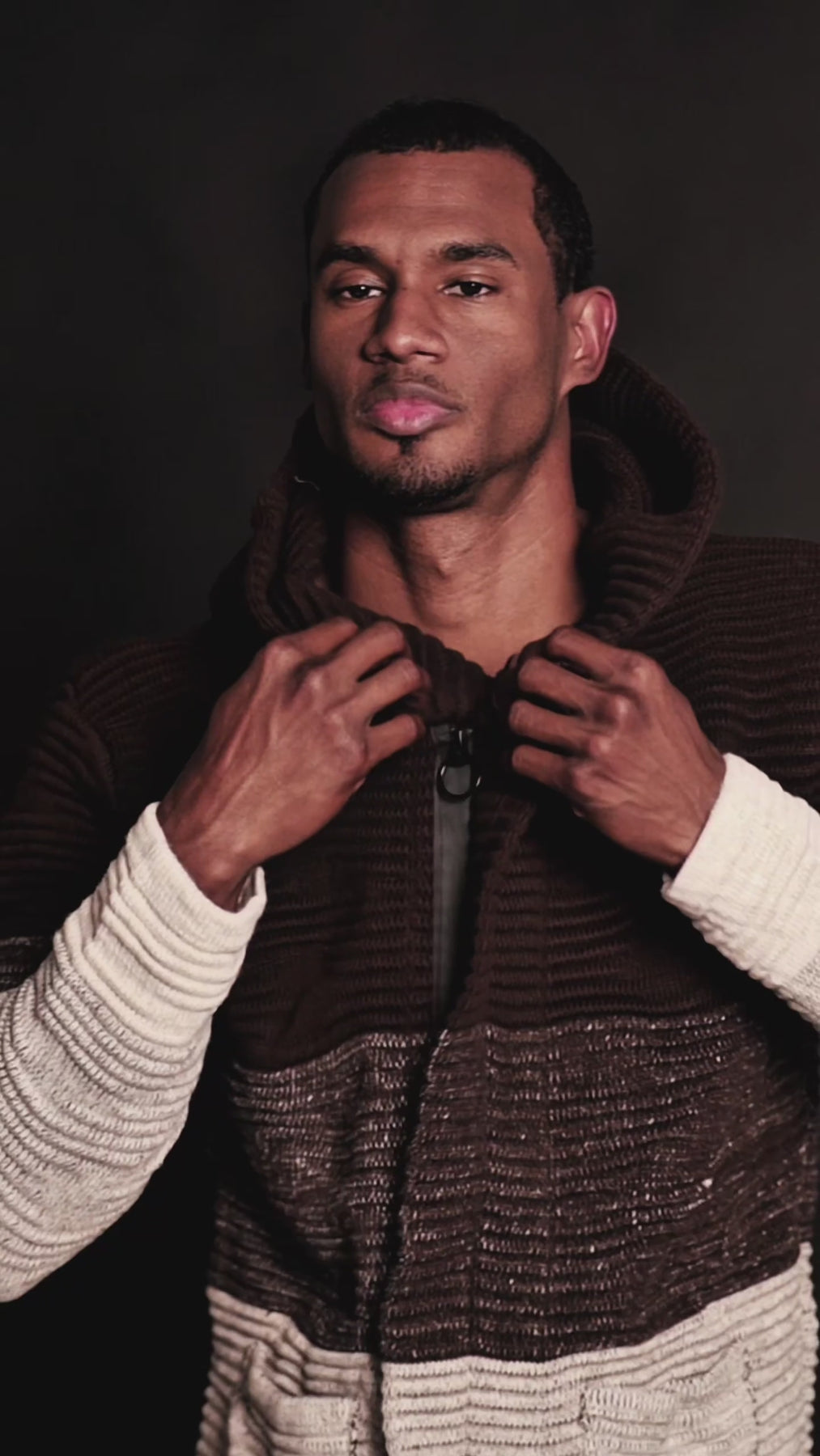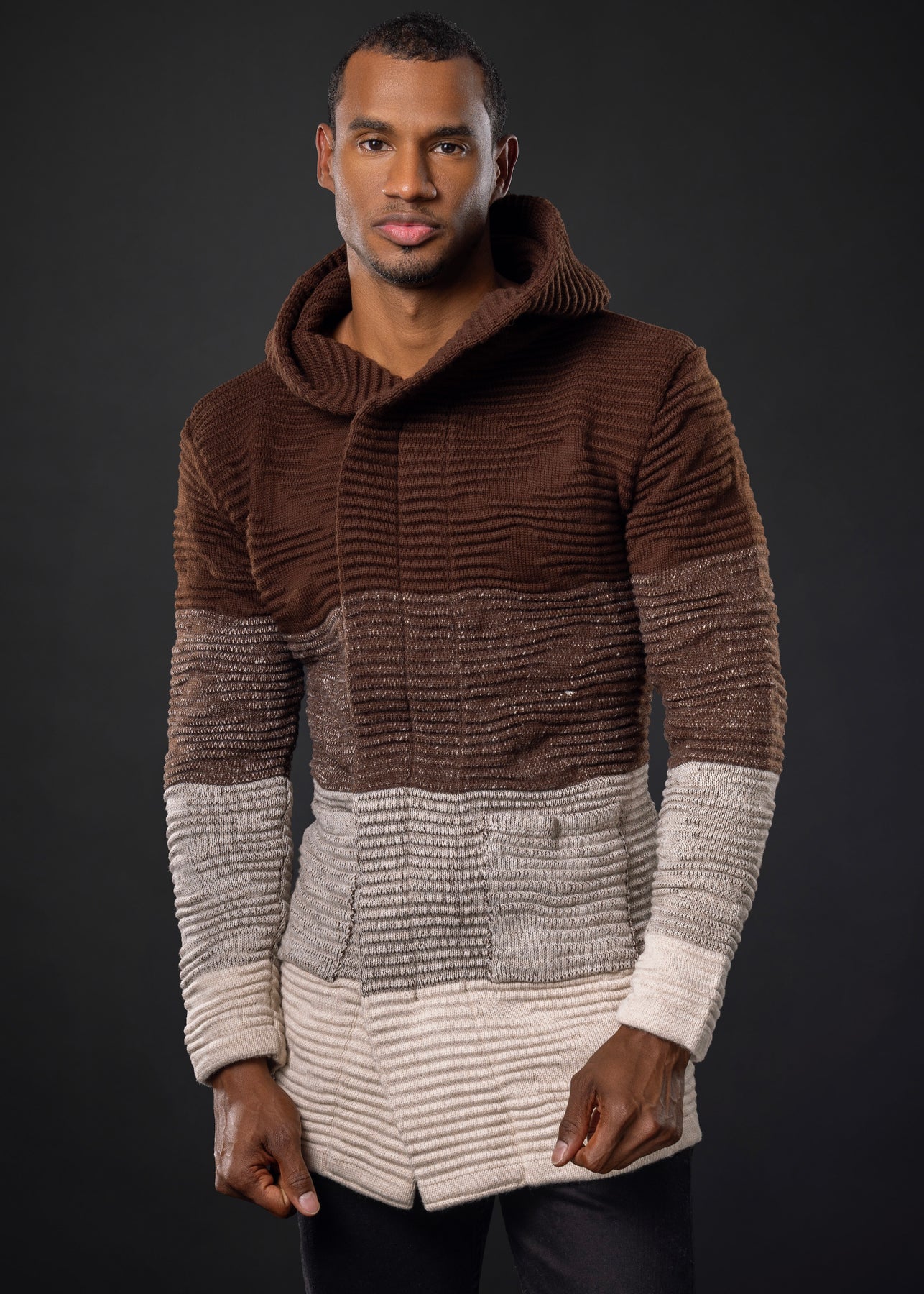 The rib-knit texture adds structure and dimension, while the sculpted hood and tailored silhouette deliver both comfort and presence
