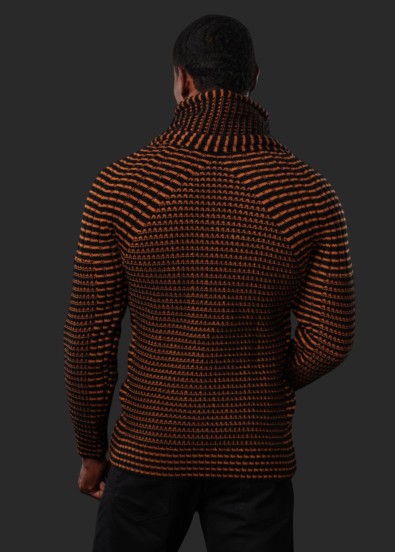 It's black/lt. cinnamon weave exudes quiet power, while the statement buckles and oversized shawl collar nod to heritage design reimagined for the modern era